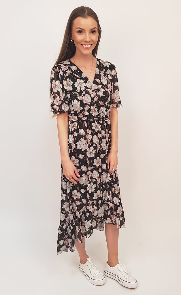 Ekta flottur sumarkjóll úr siffoni V-hálsmáli