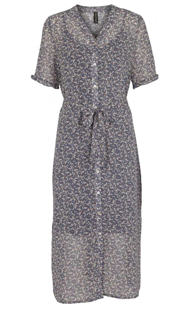 Sætur siffon kjóll með undirkjól, hnepptur alveg niður