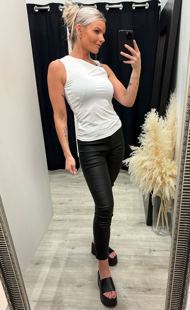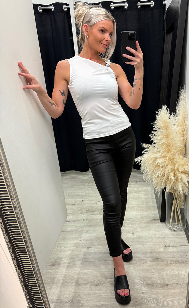 Ótrúlega flottur bolur frá danska merkinu Sisters Point. Bolurinn er úr mjúku og teygjanlegu efni og með silfur skrautsylgju. -Módel notar stærð 36/38 og er 168 cm á hæð og er í stærð XS