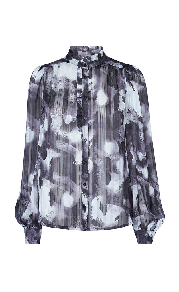 Ótrúlega falleg blússa frá danska merkinu Sisters Point. Blússan er úr léttu siffon efni, hneppt niður og með gylltu lurex glansþræði. -Módel notar stærð 36/38 og er 168 cm á hæð og er í stærð XS