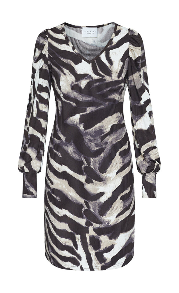 Kjóllinn er úr mjúku og teygjanlegu efni.