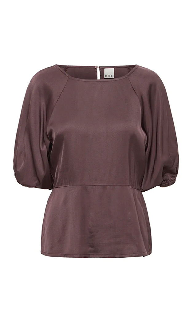 Ótrúlega falleg blússa frá danska merkinu ICHI. Blússan er úr flottu satín efni, með stuttum ermum og hneppt í bakið. -Módel notar stærð 36/38 og er 168 cm á hæð og er í stærð 36